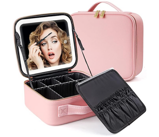 حقيبة مكياج للسفر مزودة بمرآة بإضاءة LED